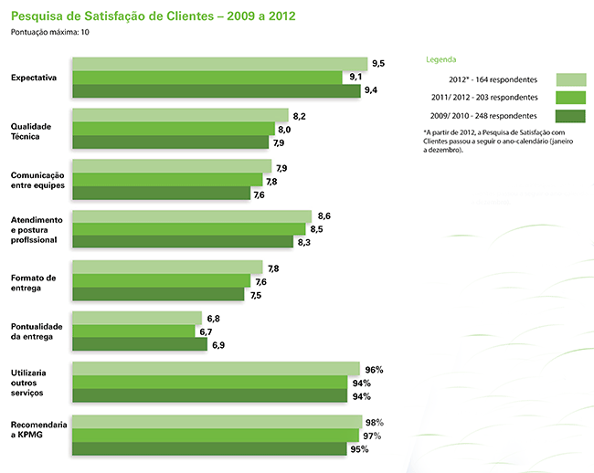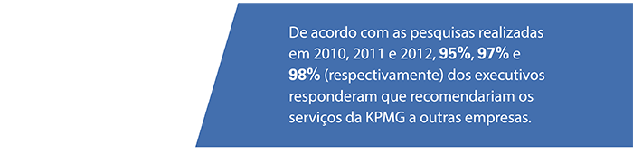 * Essas informações referem-se aos períodos de janeiro a dezembro de 2012, 2011 e 2010, e representam as operações de todas as empresas independentes que atuam sob o nome KPMG no Brasil. De acordo com a legislação vigente, as empresas independentes que atuam sob a marca KPMG no Brasil estão isentas da divulgação de balanço patrimonial, exceto pelas sociedades denominadas KPMG Structure Finance e KPMG Transaction Services, cujos balanços patrimoniais já são obrigatoriamente divulgados em jornais de grande circulação do País.