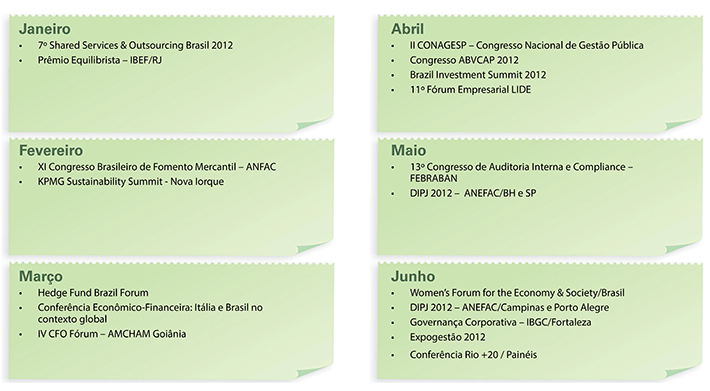 No mesmo sentido, o processo de engajamento de stakeholders, realizado em 2011, foi um importante instrumento no entendimento das questões relevantes para a condução dos nossos negócios, segundo a perspectiva dos nossos principais públicos.