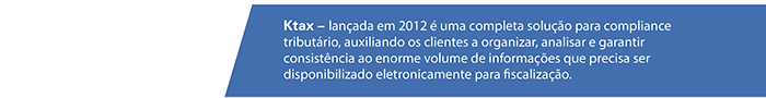 O Ktax é uma solução completa de compliance tributário que a KPMG trouxe ao mercado para permitir ao cliente fazer a verificação eletrônica dos dados reportados às autoridades fiscais - federal e estaduais -, comparando-as às regras vigentes. Assim, o cliente analisa as informações, podendo sanar inconsistências e inadequações com agilidade e eficiência.